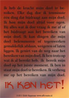 Ben jij er klaar voor om je leven niet meer te laten regeren Bestel dan vandaag nog deze baanbrekende cd en profiteer aanbieding Bestel uiterlijk 15 december 2013 en je betaalt slechts 24,95 je ontvangt een miniboekje t.w.v. 2,95 cadeau én je betaalt geen verzendkosten! Op de cd hoor je onder andere hoe ik van een pestkop af kwam, hoe ik mijn overgewicht kwijtraakte, hoe ik een tegenstander neutraliseerde, hoe ik een groeiende moedervlek liet verdwijnen, en hoe ik van iemand die ik haatte één van mijn beste vriendinnen maakte. En natuurlijk hoe je die technieken in jouw leven kunt toepassen. Over mijn vorige cd "De 9 Affirmaties" kreeg ik onder andere deze reacties: "Ik heb de nieuwste workshop van je beluisterd en ik moet zeggen dat je jezelf overtroffen hebt. Wat is hij goed, ben er ontzettend blij mee!" "Super mooie cd met een prachtige stem, heeeeeeel knap gemaakt." "Je mooie en lieve stem en geweldige tekst hebben mij om beurten kippevel, aha-momenten en de tranen over mijn wangen laten stromen." "Fantastisch! De cd heeft heel veel deurtjes geopend. Wat een cadeautje." "Ik vind deze cd echt geweldig. Vele affirmatie cd's heb ik beluisterd maar deze sprong er echt uit. De cd is overzichtelijk en op een fijne manier ingesproken. Het heeft me heel veel nieuwe inzichten gegeven!!! Ik ben superblij met deze aankoop en het is zeker de moeite om dit aan te schaffen. Edith, bedankt!" Bestel direct, vul het formulier hieronder volledig in en klik op "verzend mijn bestelling".